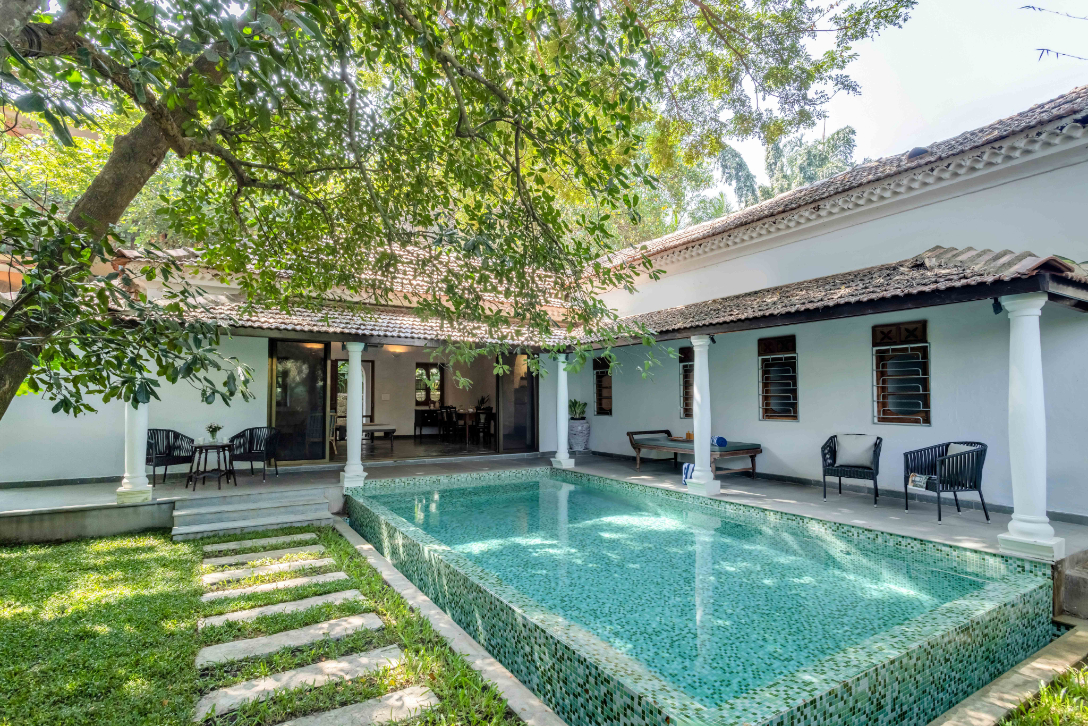 Tucked away amidst lush greenery, Casa Carolina is a charming 2BHK Goan villa that perfectly balances heritage elegance with modern luxury. Featuring tiled roofs, arched verandas, and a sun-kissed courtyard with a sparkling private pool, it offers a serene escape from the everyday. The interiors are tastefully designed with warm tones and stylish furnishings, creating a cozy yet sophisticated ambiance. Ideal for families or couples, Casa Carolina promises a peaceful retreat surrounded by nature, comfort, and Goan charm.