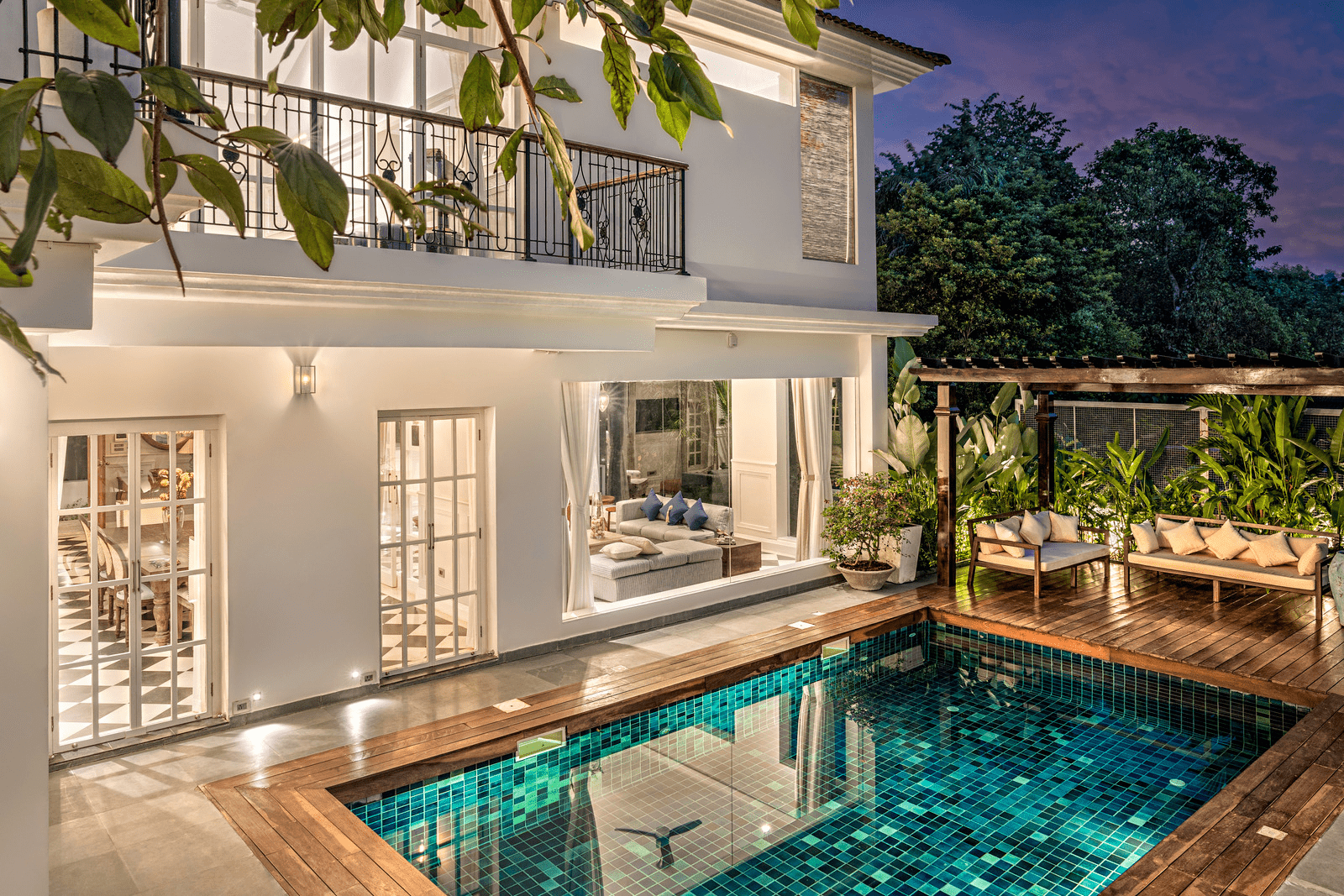 ShareCasa Belinha is a myriad of beauty and luxury overlooking lush green hills in an exclusive part of Assagao, Goa. The four bedroom villa includes an enormous living area , dining room, a versatile and chic entertainment space with huge outdoor terraces and a state-of-the-art kitchen. A resplendent and dreamy space, the large swimming pool and the beauty of the lush foliage provides you with your very own paradise. Casa Belinha has been crafted in a manner to allow in as much natural light as possible. The colour palette is infused with neutral and pastel shades which are offset by the black and white tile flooring. The entire house embodies beautiful nuances juxtaposed against clean and contemporary designs. The interiors boast high vaulted ceilings, luxurious furnishing and fittings and the stunning marble staircase is the highlight of the space. No Goan home is complete without a veranda, and Casa Belinha’s veranda is a magnificent space to entertain, relax or just enjoy the peace and serenity that surrounds you. It is the kind of home that is made to last and for the generations to come to enjoy and appreciate its beauty.